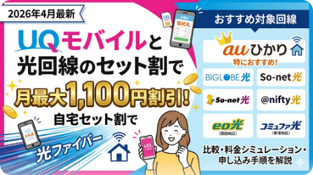 UQモバイルと光回線のセット割で月最大1,100円割引!おすすめ対象回線と申し込み方法【2026年4月最新】