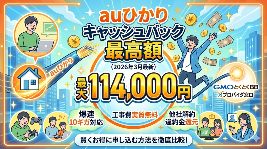 auひかりキャッシュバック最高額は?2026年3月最新の窓口比較でお得に申し込む方法
