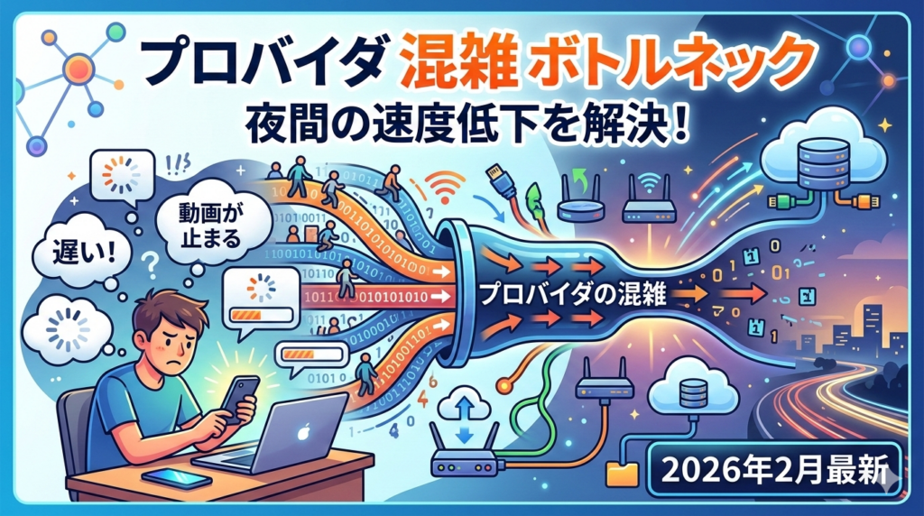 プロバイダの混雑がボトルネックに?夜間の速度低下の原因と根本的な解決策を徹底解説【2026年2月最新】 「夜になるとネットが遅くなる」「動画が途切れてストレス」――その原因の多くは、プロバイダ側の混雑によるボトルネックです。本記事では、なぜプロ... -
