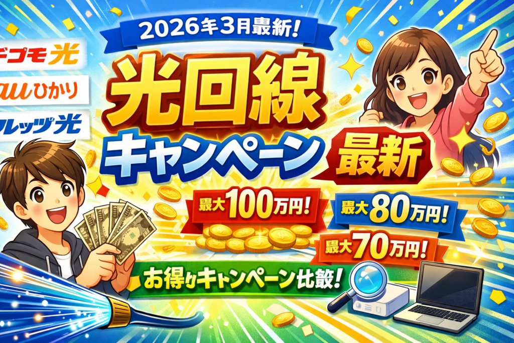 【2026年3月最新】光回線キャンペーン比較!キャッシュバックが最もお得な回線はどこ?