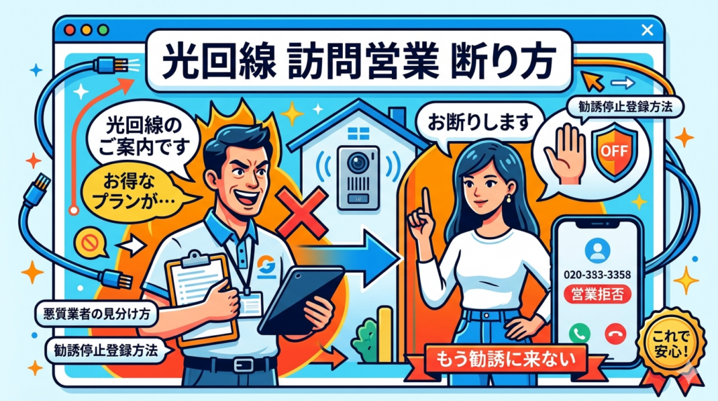 光回線の訪問営業はこう断る!今日から使える撃退フレーズ・悪質手口の見抜き方・契約してしまった場合の対処法まで徹底解説【2026年最新】