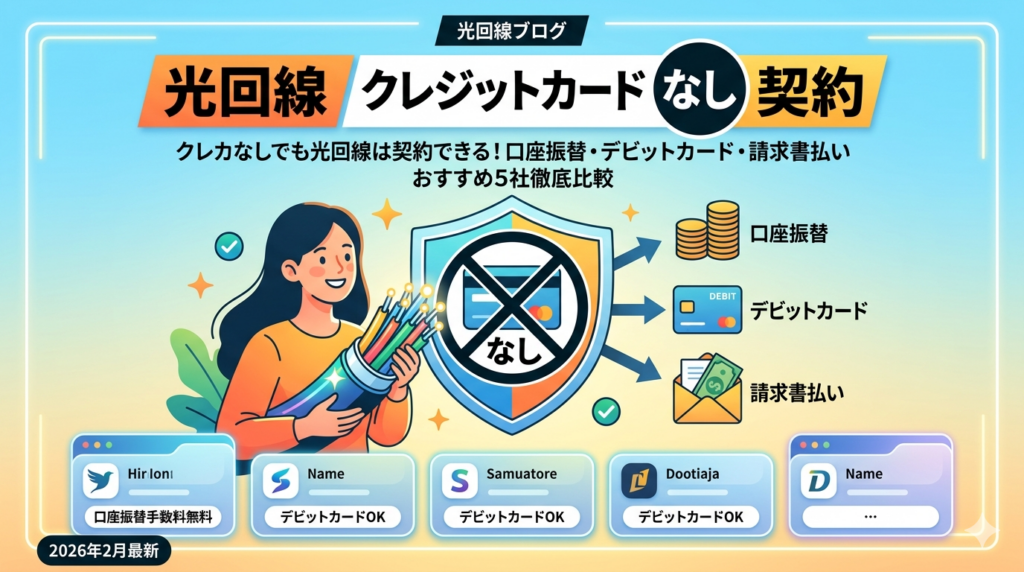光回線はクレジットカードなしで契約できる!口座振替対応おすすめ5社比較【2026年2月】