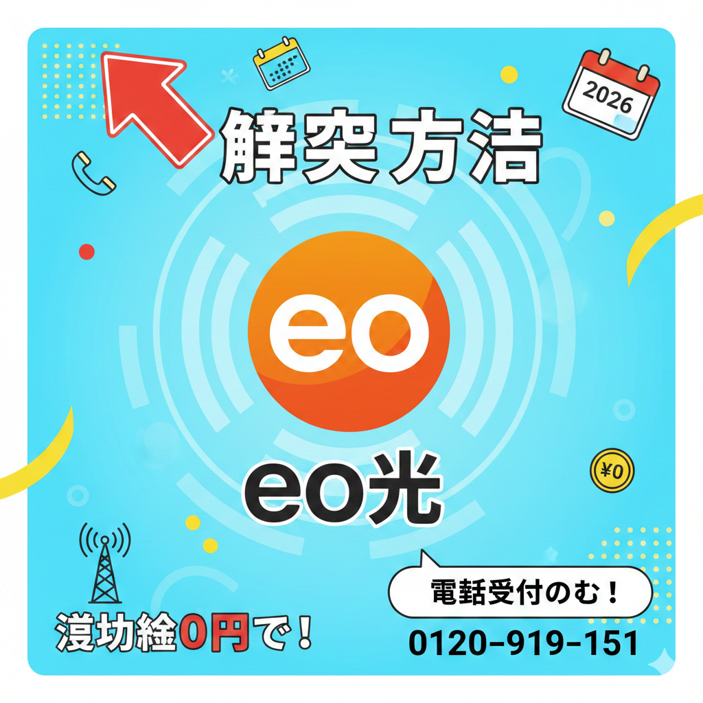 eo光の解約は電話でしか受け付けていませんが、正しいタイミングと手順さえ押さえれば違約金0円で手続きが完了します。この記事では、eo光の解約方法・違約金(解約精算金)の金額・撤去工事費・レンタル機器の返却手順まで、2026年最新の情報をもとにわかりやすく解説します。