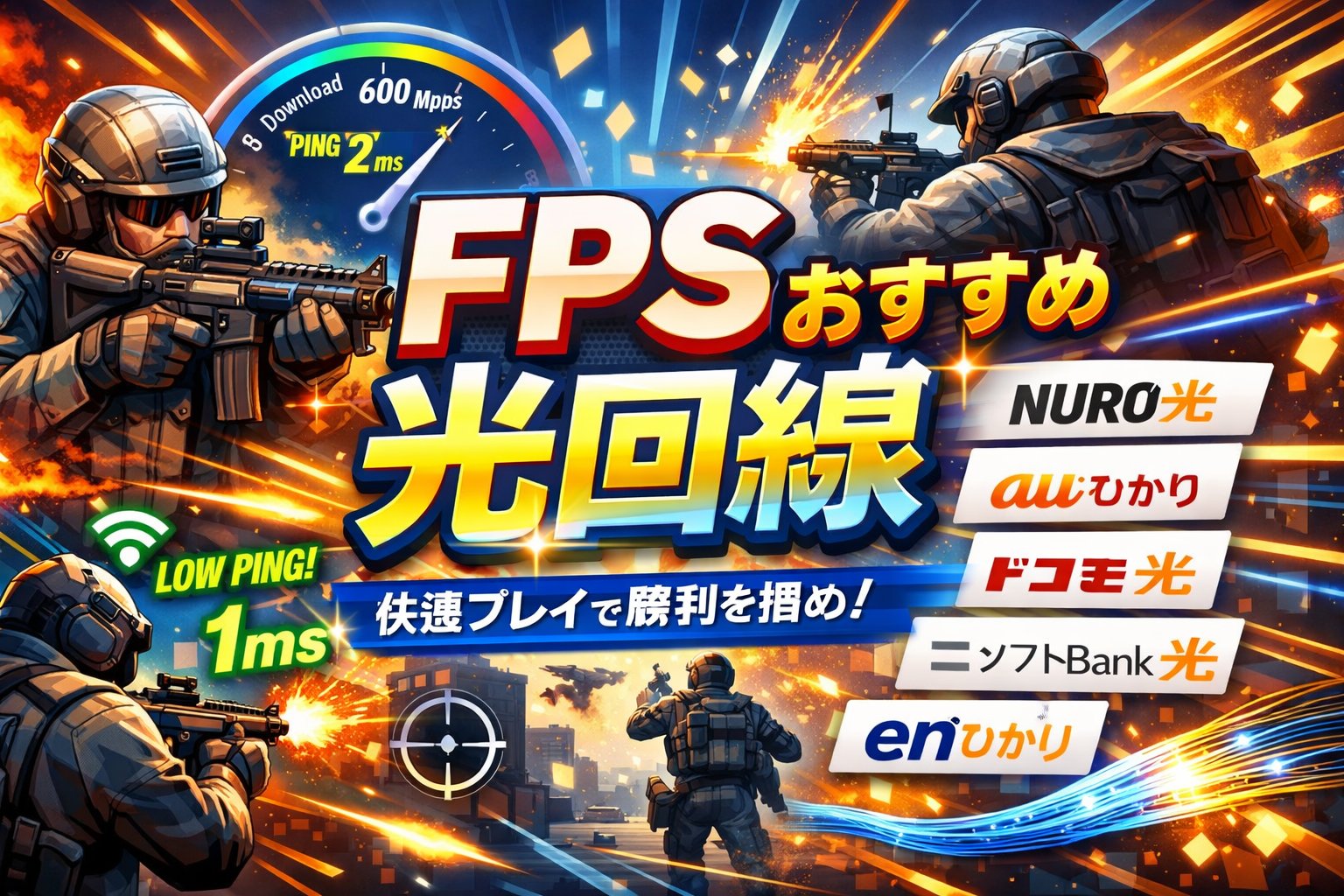 FPSゲームで「ラグのせいで撃ち負けた」「回線落ちでランクが下がった」——そんな経験はありませんか。FPSはPing値1msの差が勝敗を分けるジャンルだからこそ、光回線選びが戦績に直結します。この記事では、2026年最新の実測データと料金を比較し、FPSガチ勢が本当に選ぶべき光回線を厳選して紹介します。