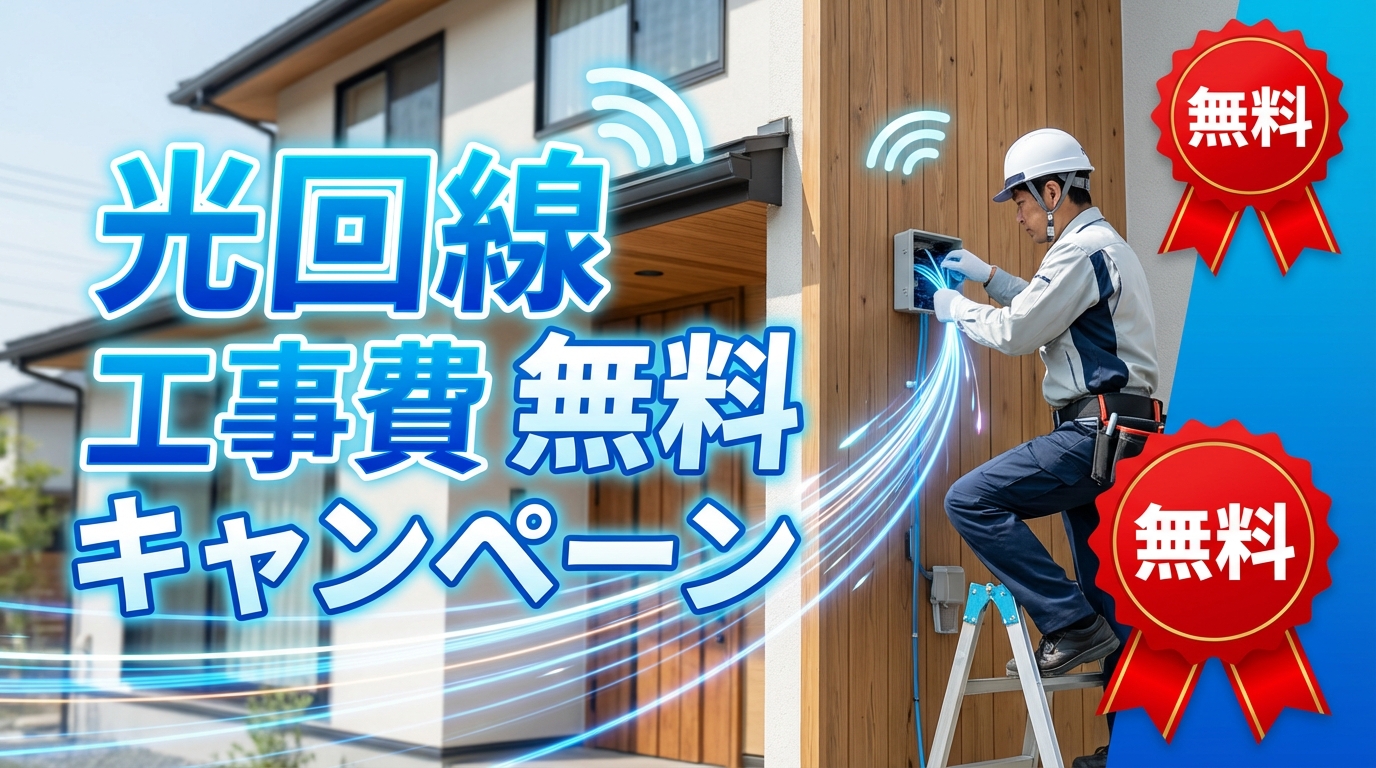 2026年2月現在、多くの光回線が10ギガプランの工事費も無料キャンペーンの対象にしています。GMOとくとくBB光の10ギガプランは6ヶ月間0円キャンペーンを実施中で、enひかりクロス(10ギガ)も工事費完全無料です。高速通信を求める方にとっても、工事費無料キャンペーンは追い風となっています。10ギガ対応の光回線をさらに詳しく比較したい方はこちらの記事も参考にしてください。