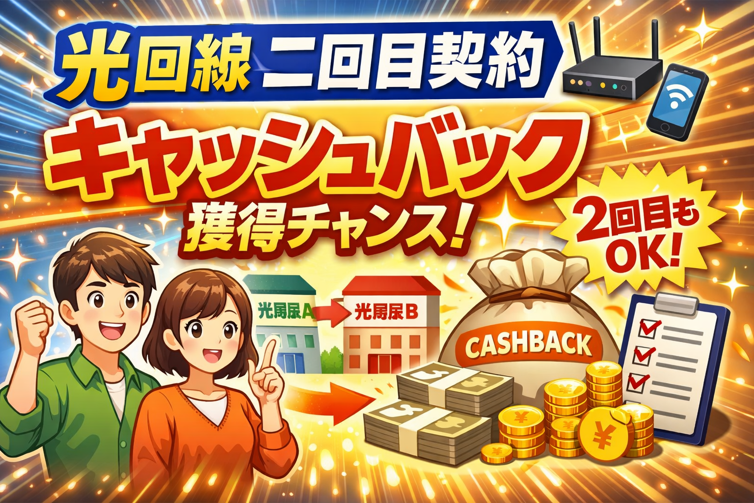 光回線の二回目の契約でもキャッシュバックはもらえる!条件と注意点を徹底解説【2026年3月最新】