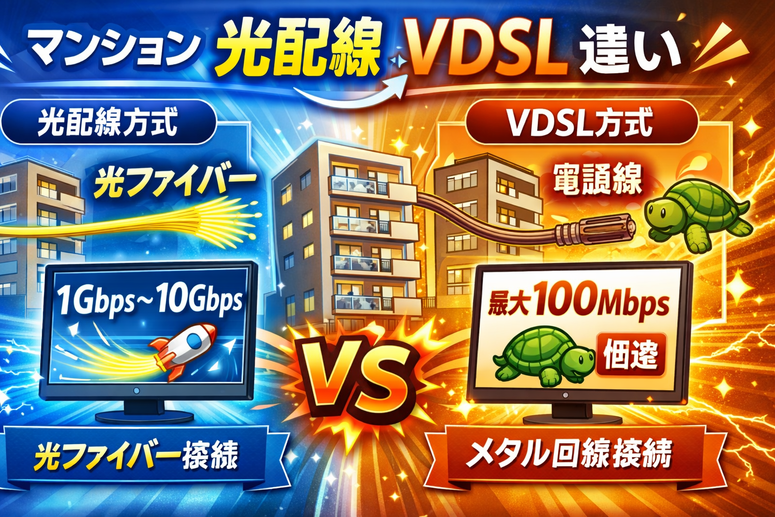 光配線方式とVDSL方式の違いを5つのポイントで徹底比較