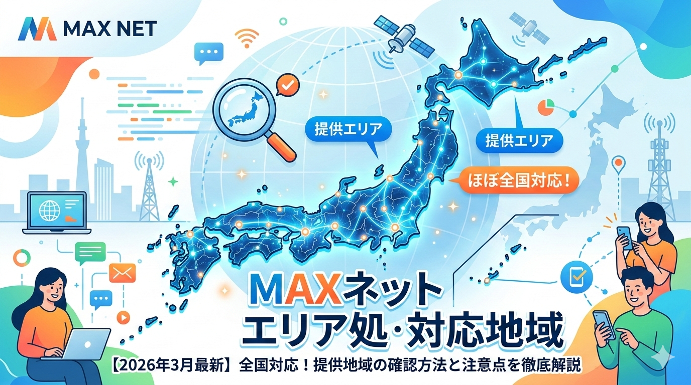 エリア確認から申し込みまでの詳しい手順については、MAXネット光の対応エリアは全国!提供エリア確認方法と申し込み手順を徹底解説【2026年2月最新】でさらに詳しく解説しています。