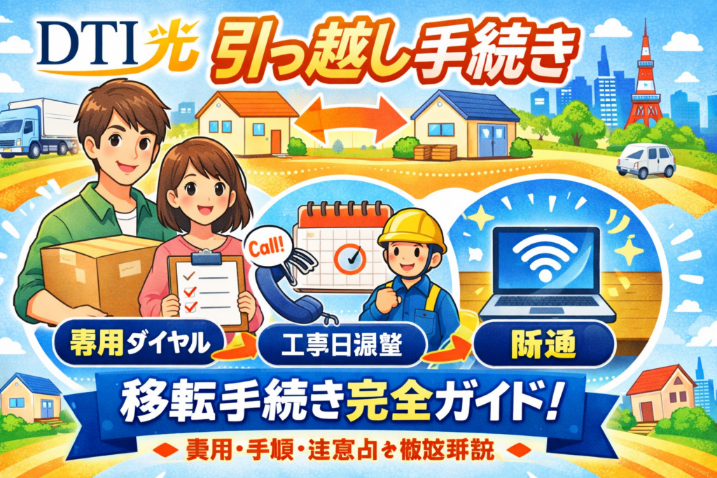 DTI光の引っ越し手続き完全ガイド|移転費用・手順・注意点を2026年最新情報で徹底解説 DTI光を利用中で引っ越しが決まった方に向けて、移転手続きの全手順・費用・注意点をわかりやすく解説します。結論から言うと、DTI光の引っ越し手続きは「専用ダイヤ... -