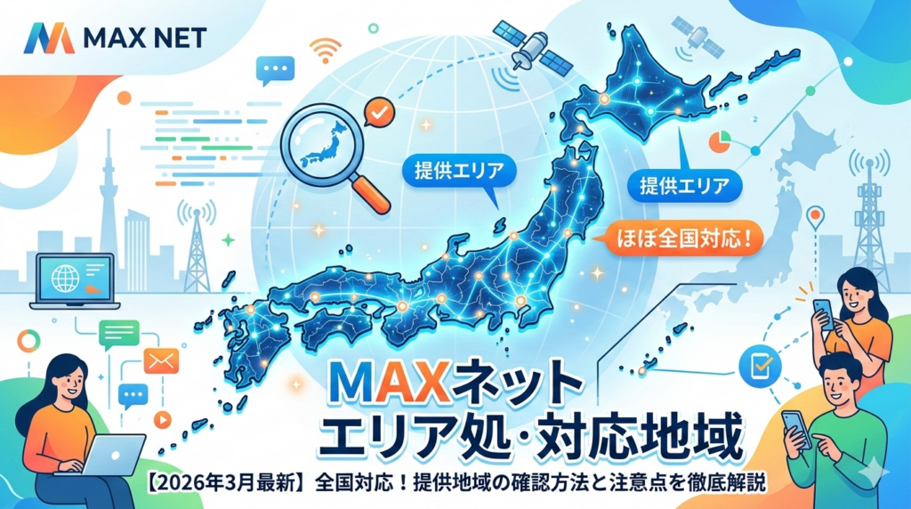 MAXネット光の対応エリアは全国!提供地域の確認方法と注意点を徹底解説【2026年3月最新】 MAXネット光はフレッツ光と同じNTT回線を利用した光コラボレーションモデルのため、提供エリアはほぼ全国に対応しています。ただし、NTTのフレッツ光が届いていな... -