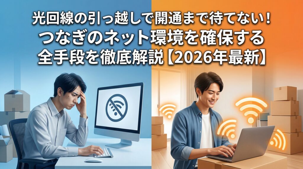 光回線の引っ越しで開通まで待てない!つなぎのネット環境を確保する全手段【2026年最新】