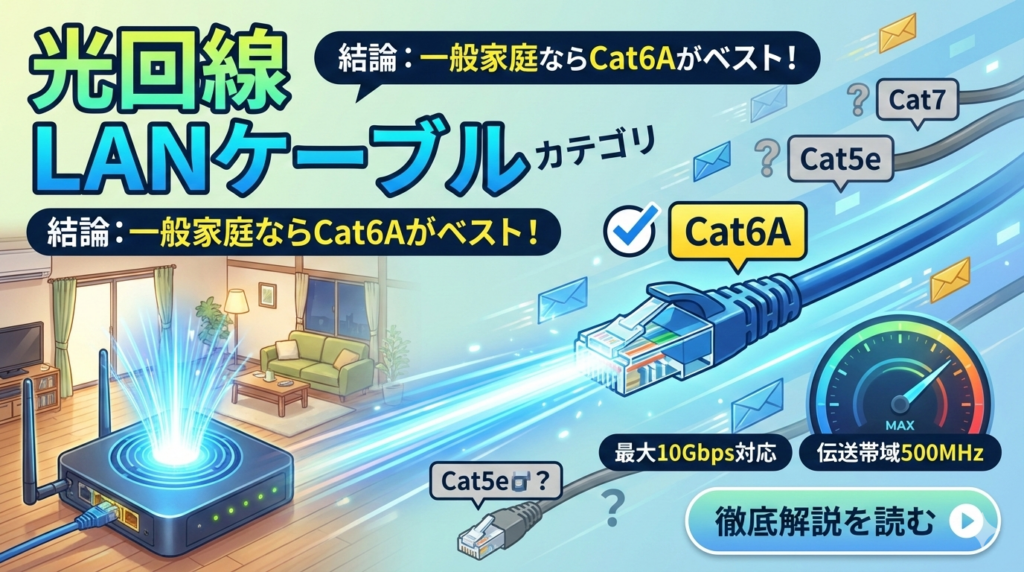 光回線のLANケーブルおすすめカテゴリはCat6A!選び方と比較を徹底解説