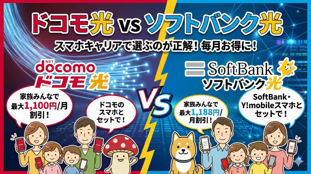 【2026年2月最新】ドコモ光 vs ソフトバンク光を徹底比較|料金・速度・セット割で失敗しない選び方