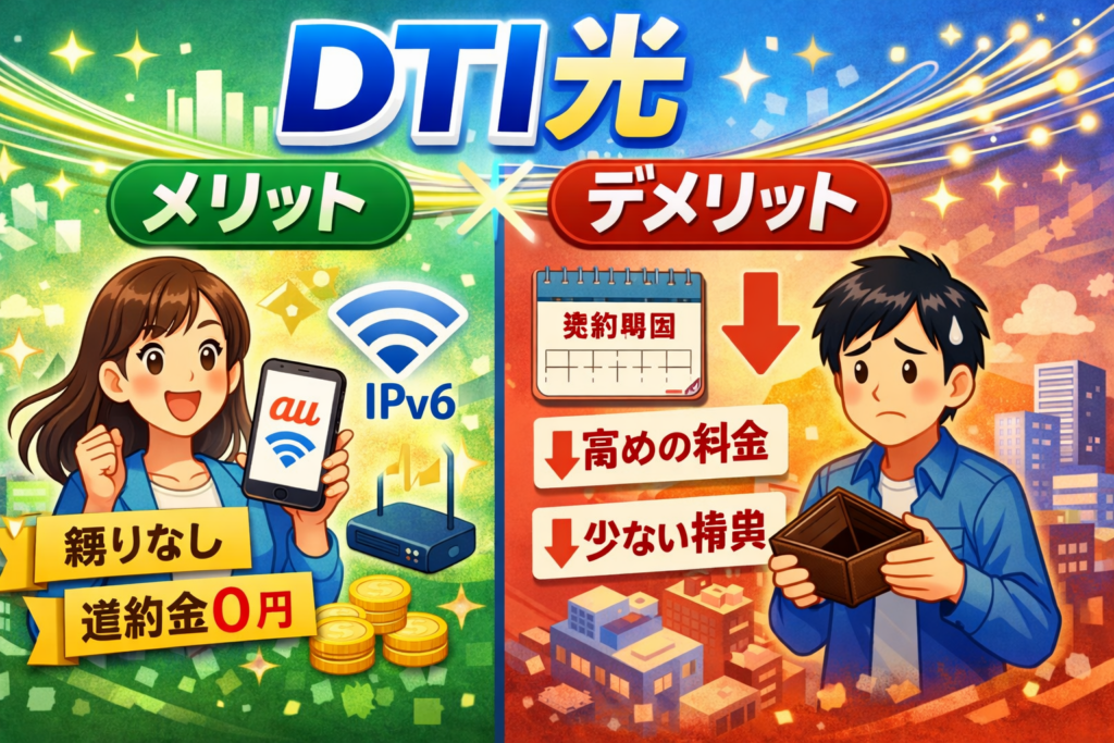 DTI光のメリット・デメリット徹底解説|auセット割・縛りなし光回線の全貌【2026年2月】
