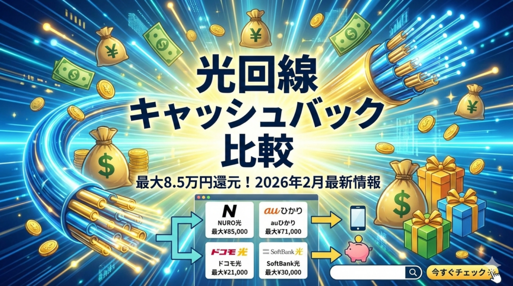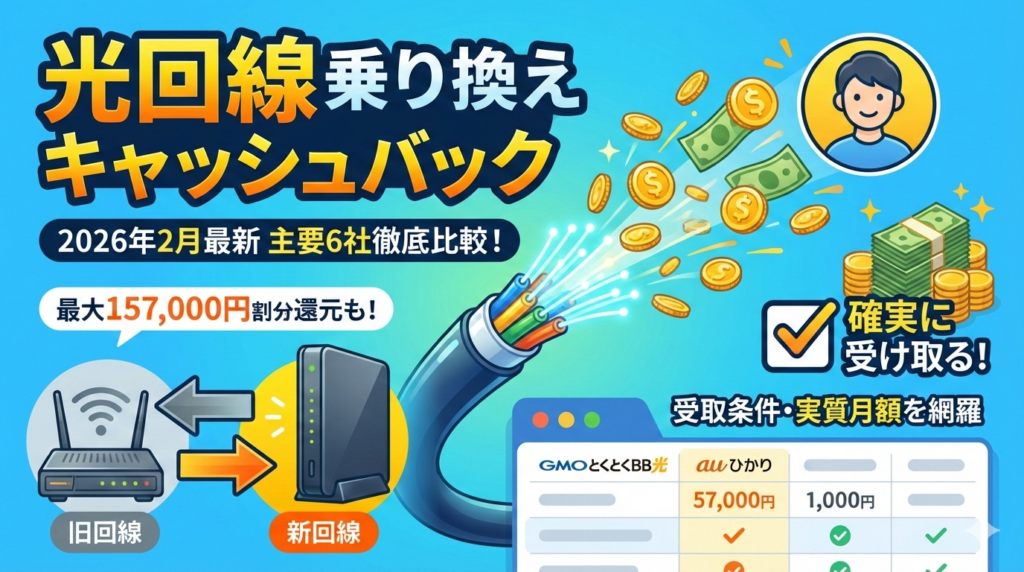 【2026年2月最新】光回線キャッシュバック比較6社|高額還元で失敗しないおすすめ窓口と受け取りのコツ
