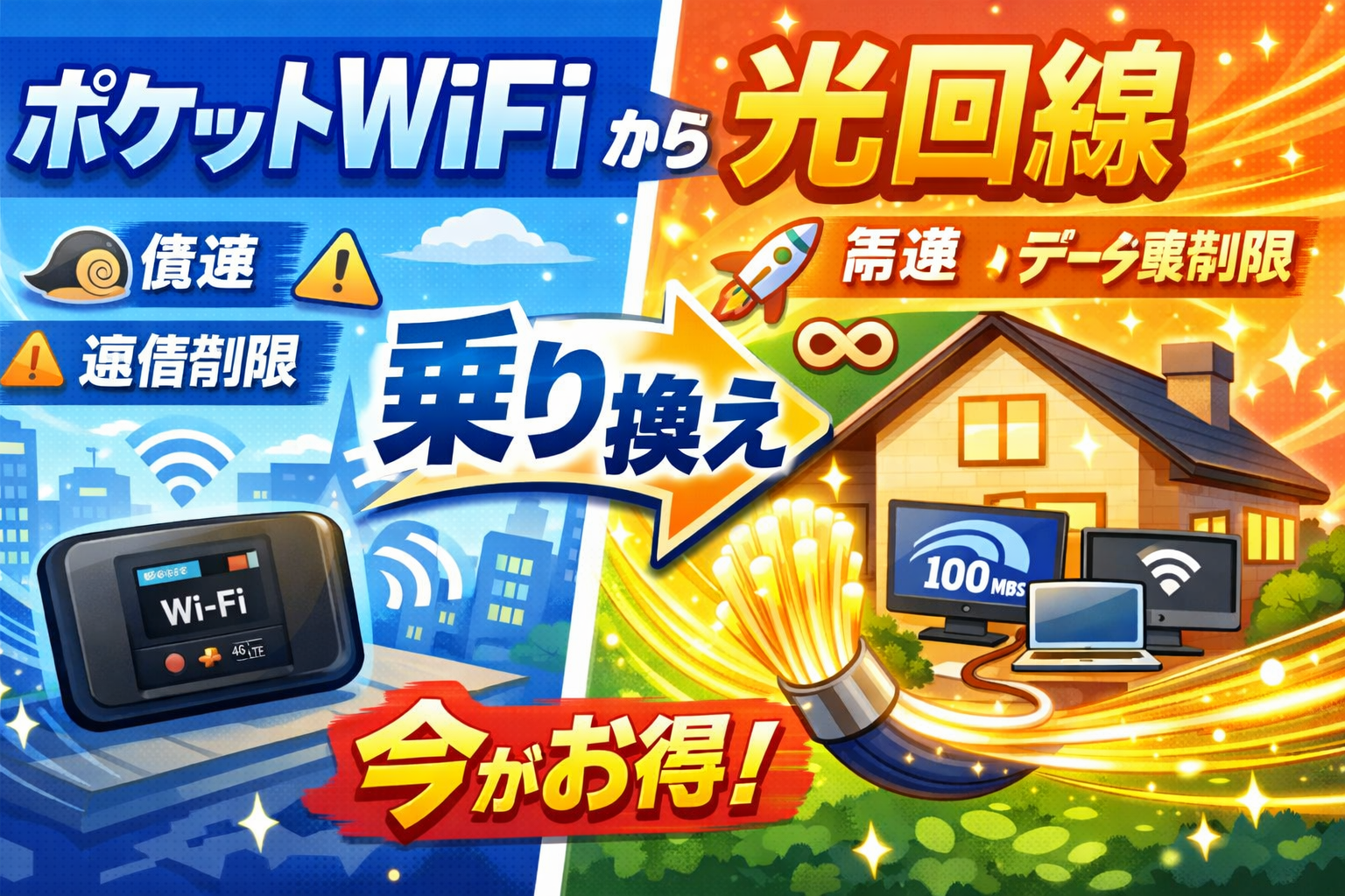 【2026年3月最新】ポケットWiFiから光回線に乗り換えるべき?手順・料金比較・おすすめ回線を徹底解説