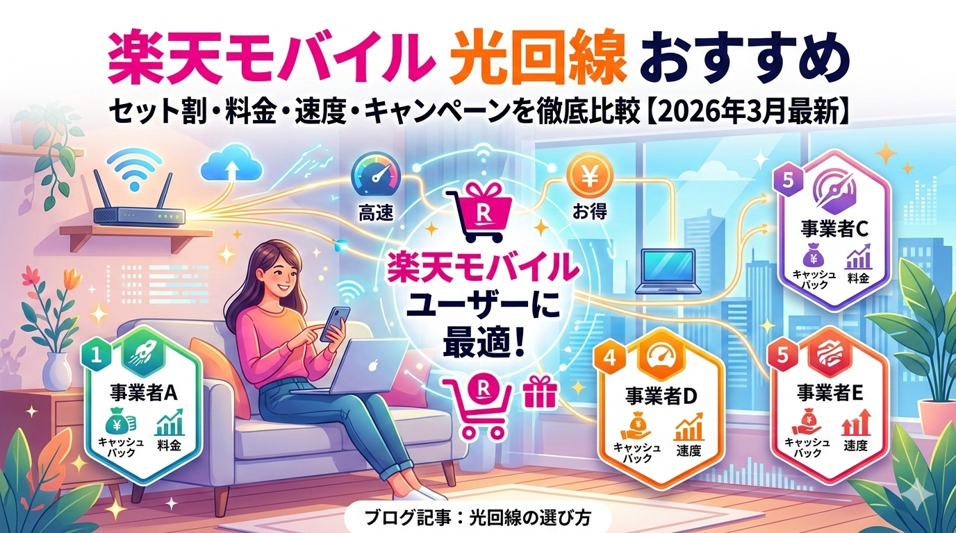楽天モバイルユーザーにおすすめの光回線5選|セット割・料金・速度・キャンペーンを徹底比較【2026年3月最新】