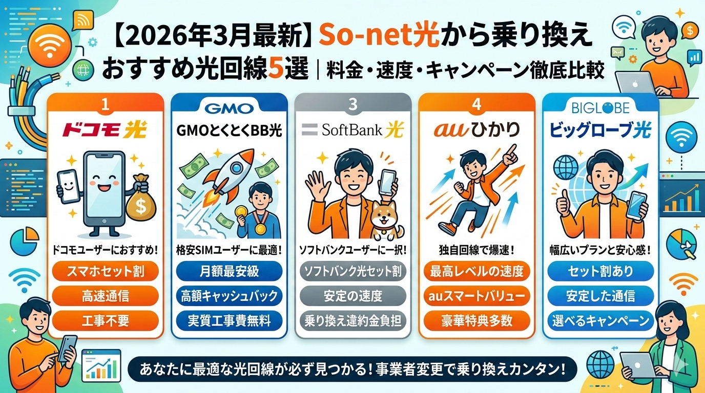 So-net光から乗り換えおすすめ光回線5選|料金・速度・キャンペーン徹底比較【2026年3月】