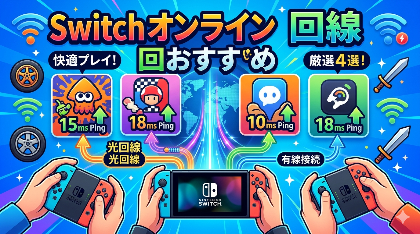 Nintendo Switchでオンライン対戦を快適に楽しむには、回線選びが最重要です。結論から言えば、Ping値が低く実測速度の速い光回線を有線接続で使うのがベスト。本記事では、Switch特有の通信事情を踏まえたうえで、本当におすすめできる光回線を厳選して紹介します。