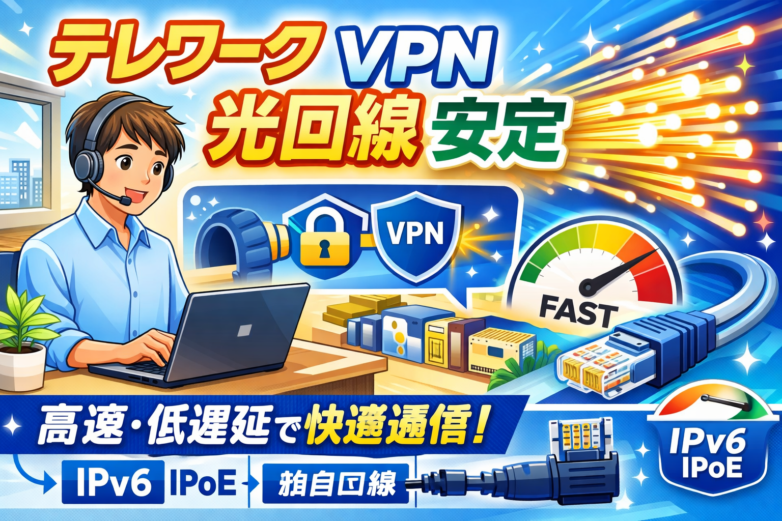 テレワーク中のVPN接続が遅い・切れるとお悩みなら、原因は光回線にあるかもしれません。本記事では、VPN通信が安定しやすい光回線5社を実測速度・Ping値・IPv6対応状況で比較し、在宅勤務の通信環境を根本から改善する方法を解説します。